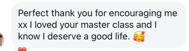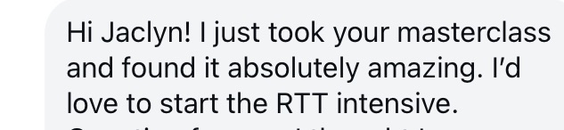 "Jaclyn's masterclass made me understand my behaviours and how she can support me to achieve my goals, and excited there is a way forward that isn't wishful thinking but a practical way forward."