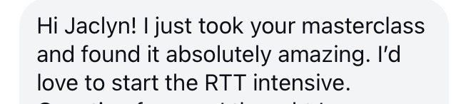 "Jaclyn's masterclass made me understand my behaviours and how she can support me to achieve my goals, and excited there is a way forward that isn't wishful thinking but a practical way forward."